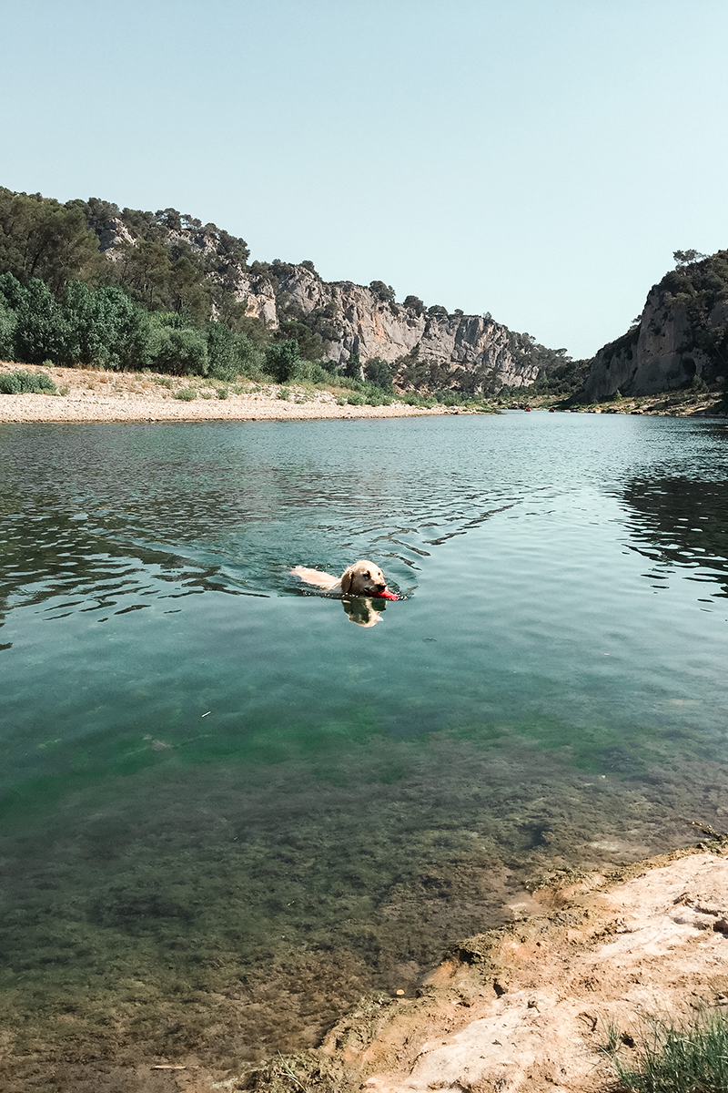 La cani-randonnée le long des Gorges du Gardon offre une expérience inoubliable pour vous et votre chien. Entre paysages époustouflants, moments de baignade et découverte de la nature vous allez passer une excellente journée. Nous vous conseillons de profiter de cet endroit magnifique pour organiser un petit pique-nique ! Les gorges du Gordon, surtout Collias ont été pendant 5 ans notre petite bulle de décompression et d’amusement avec notre Hannah !