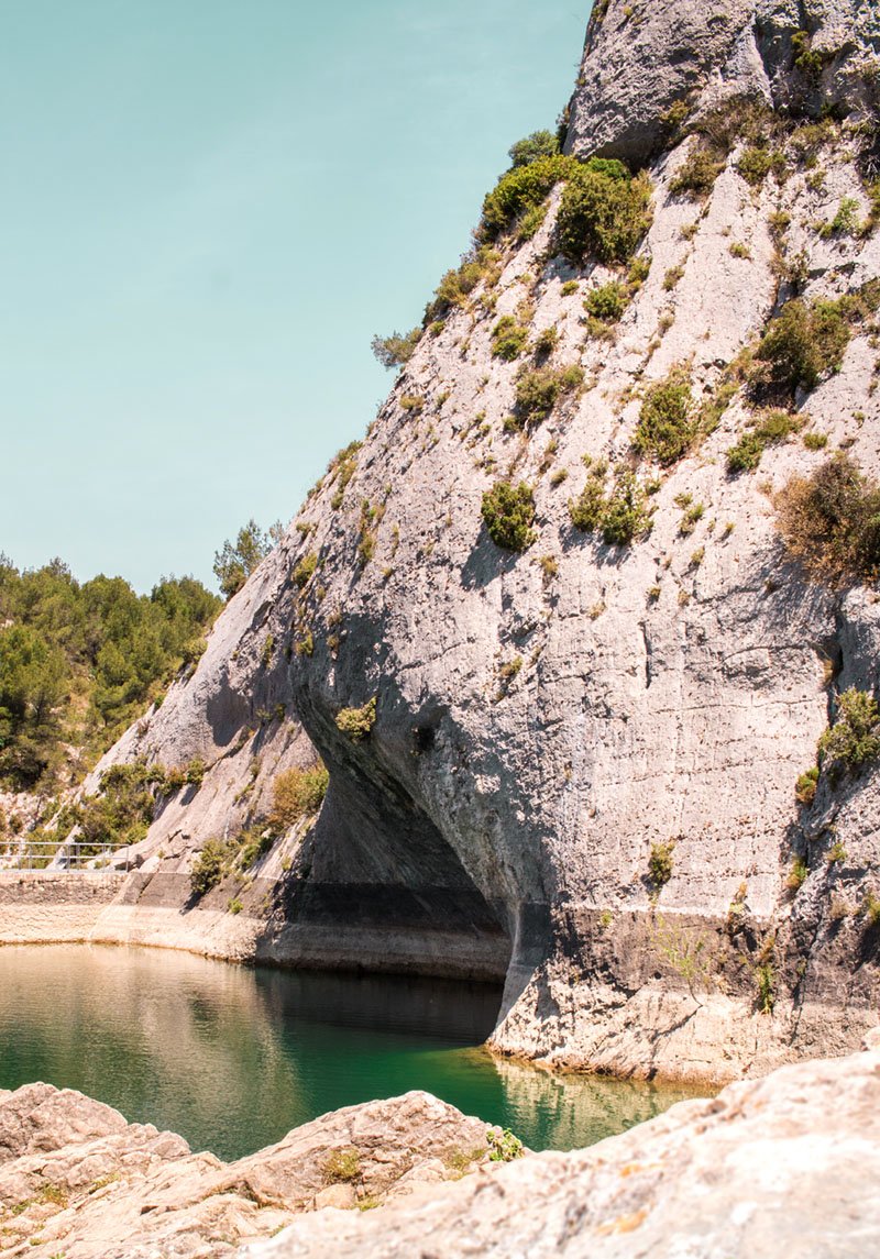 Tout d’abord, nous avons commencé notre journée en mode cani-randonnée au Lac de Peiroou à 15 min de Saint-Rémy-de-Provence. Nous tenons à vous informer dès le départ, ce n’est pas un très grand Lac, c’est du reste un barrage. Il fût crée par les romains pour alimenter la cité antique de Glanum et ainsi fournir une réserve d’eau à celle-ci. Le Lac est situé au cœur des Alpilles, entre forêts de pins et montagnes rocheuses, un cadre bucolique !!! C’est également le point de départ de nombreux GR dont celui en direction des Baux de Provence. Toutefois, l’accès peut être fermé par arrêté préfectoral en raison des incendies (1er juin au 30 septembre) donc pensez à vérifier l’accès (Feux de foret Bouches-du-Rhône) avant de vous y rendre.