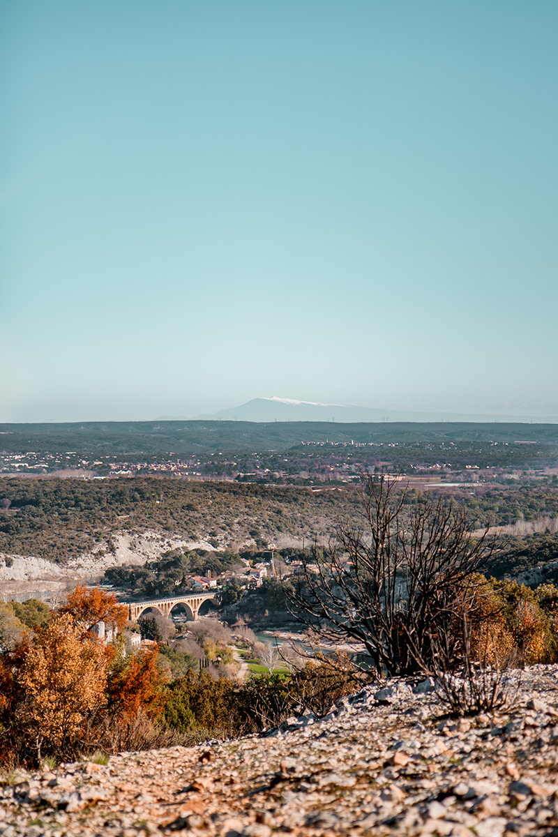 - Le pont de Collias, visible en contrebas, un repère incontournable du paysage.