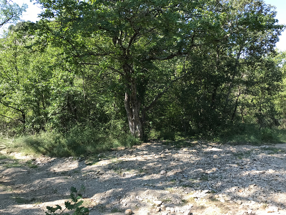 – Vous arrivez à un croisement ensuite, vous apercevrez un arbre face à vous. Ce dernier est un arbre « repère » (en écrivant cette phrase l’espace d’un instant nous sommes dans Koh Lanta ^^), prenez à droite pour les petites Aiguière, à gauche pour les grandes. Nous sommes déjà passés à gauche mais c’était impraticable pour nous avec Hannah. A partir de là, vous pénétrez dans le lit de la rivière …alors prudence !!! (Photo 9)