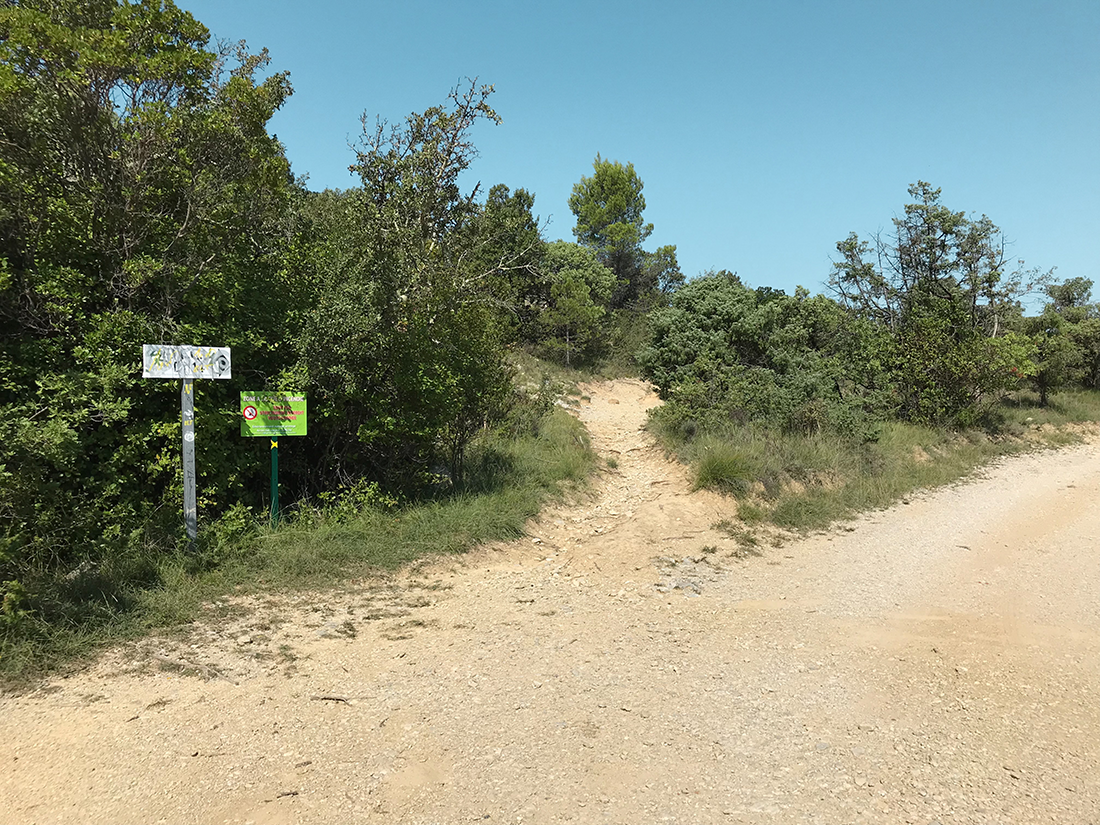 – Vous arrivez sur un carrefour, prendre le chemin à gauche avec le panneau « D.F.C.I D14″ tagger (Photo 3)