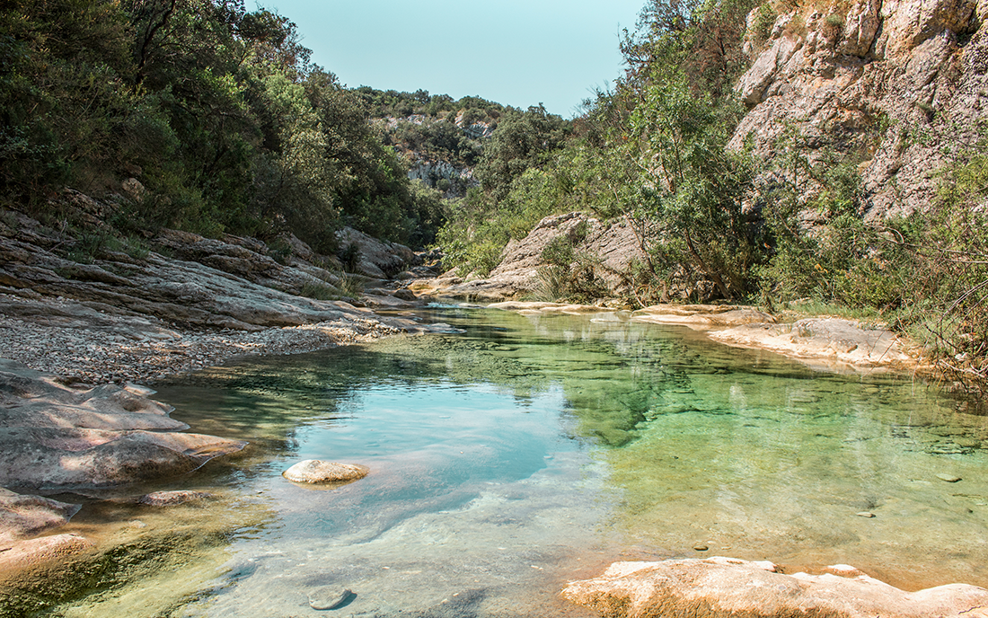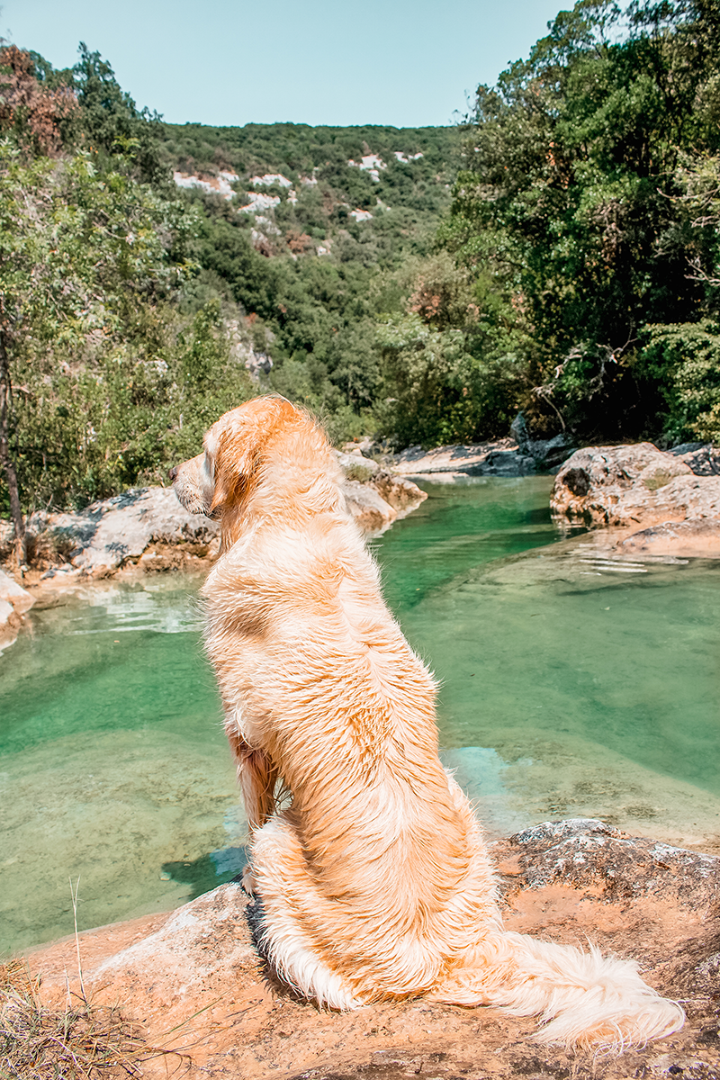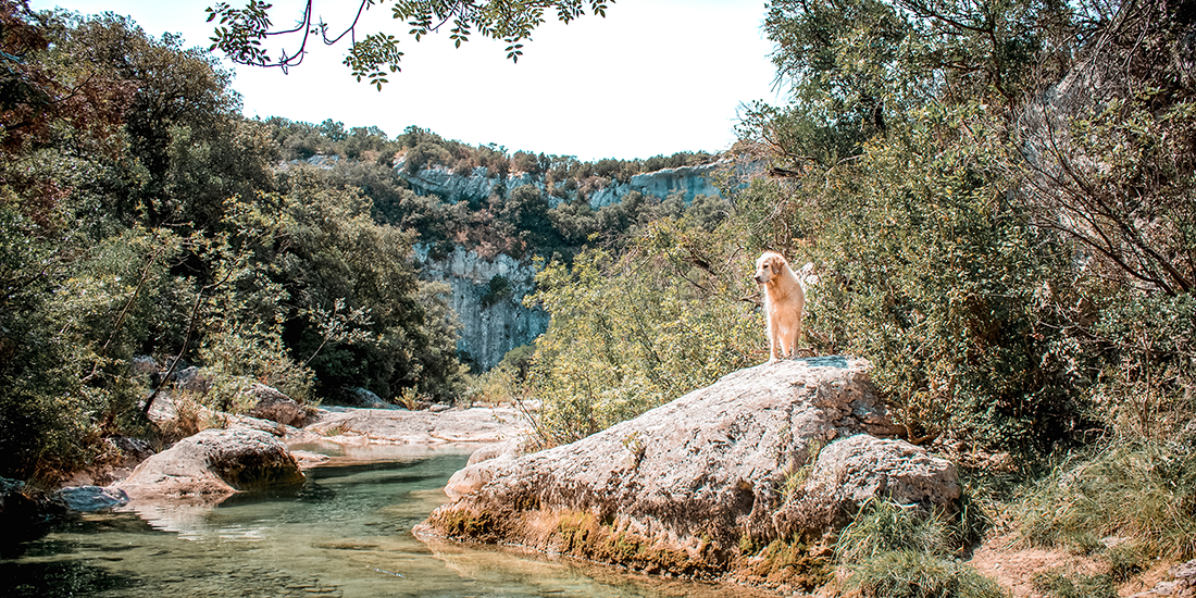 Aujourd’hui on vous emmène en randonnée dans l’un des paradis Gardois…les Petites Aiguières avec son chien ! Elles sont situées entre la commune de Navacelles et de Bouquet dans le département du Gard. Cette Cani-rando vous dépaysera l’espace d’une journée, dans un lieu unique et magique. Entre canyon, marmite et une eau d’un vert irréel, les aiguières vont vous transporter dans un autre univers !